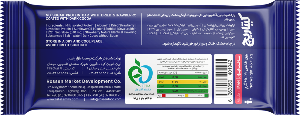 بار پروتئین زیرو توت فرنگی - 45 گرم (۳۵٪) پروتئین